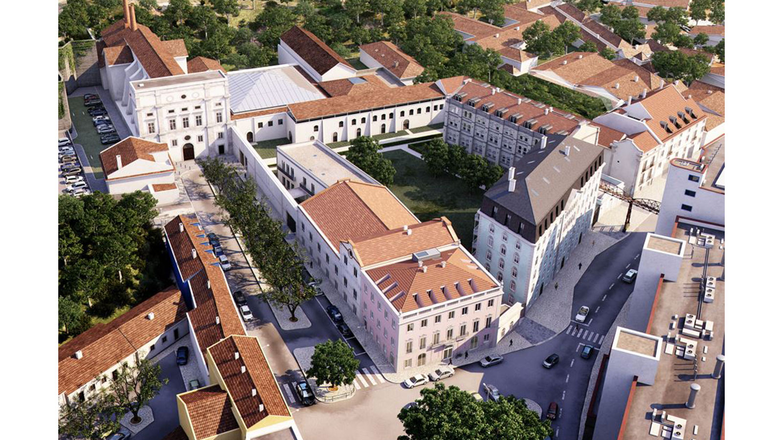 O projeto integra o Convento do Beato, que se manterá como centro de eventos, e residências com uma extensa área privativa, ginásio e zonas verdes.